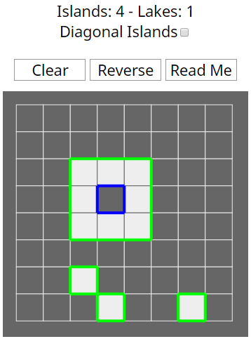 this.includeDiagonal = false; //false - only horizaontal & vertical neighbors are considered adjacent for island grouping. true: diagonal land nodes are also adjacent